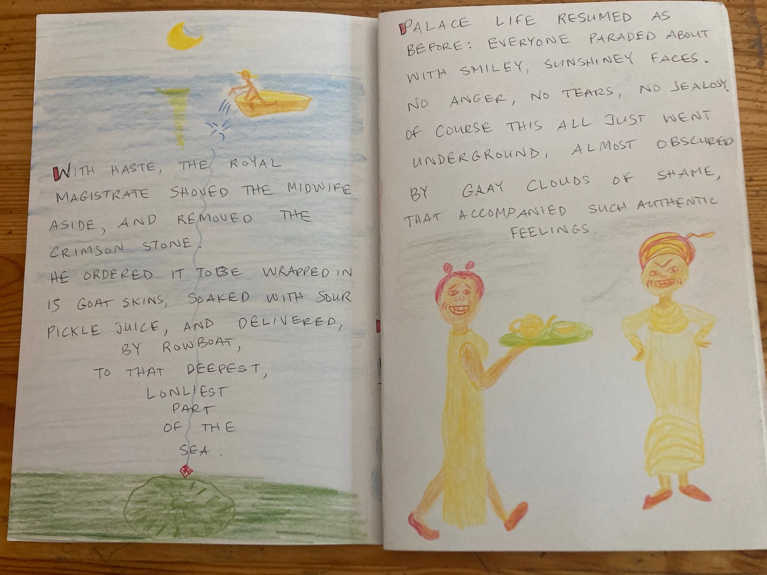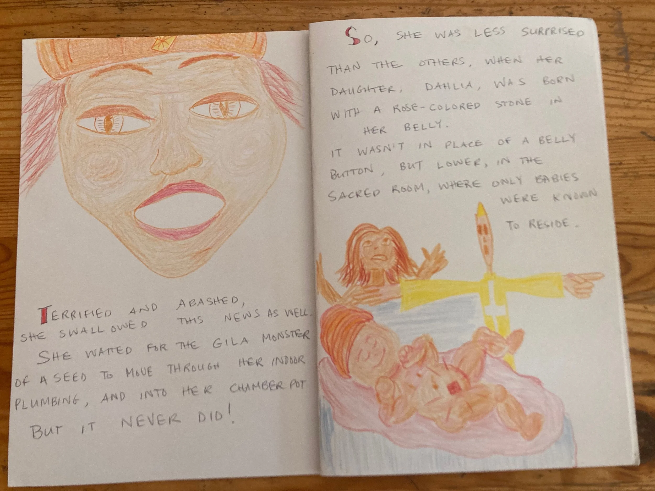 If you’ve been paying attention, you recognize the ways beauty and freedom are squashed and shamed, mostly for the pretense of some order. Writing about these ideas outside the arena of an enraged, feminist, 80’s grad school student is a delight. The spell of the story actually swept me into a flow-state-kind-of-trance, and I sat for an entire day with my colored pencils, scribbling away.